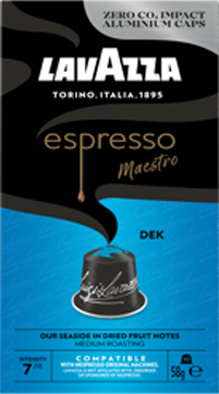 DISCOVER MORERecalling the light breeze at the beach in September, our Espresso Maestro Dek has a well-balanced taste with notes of dried fruit and chocolate.